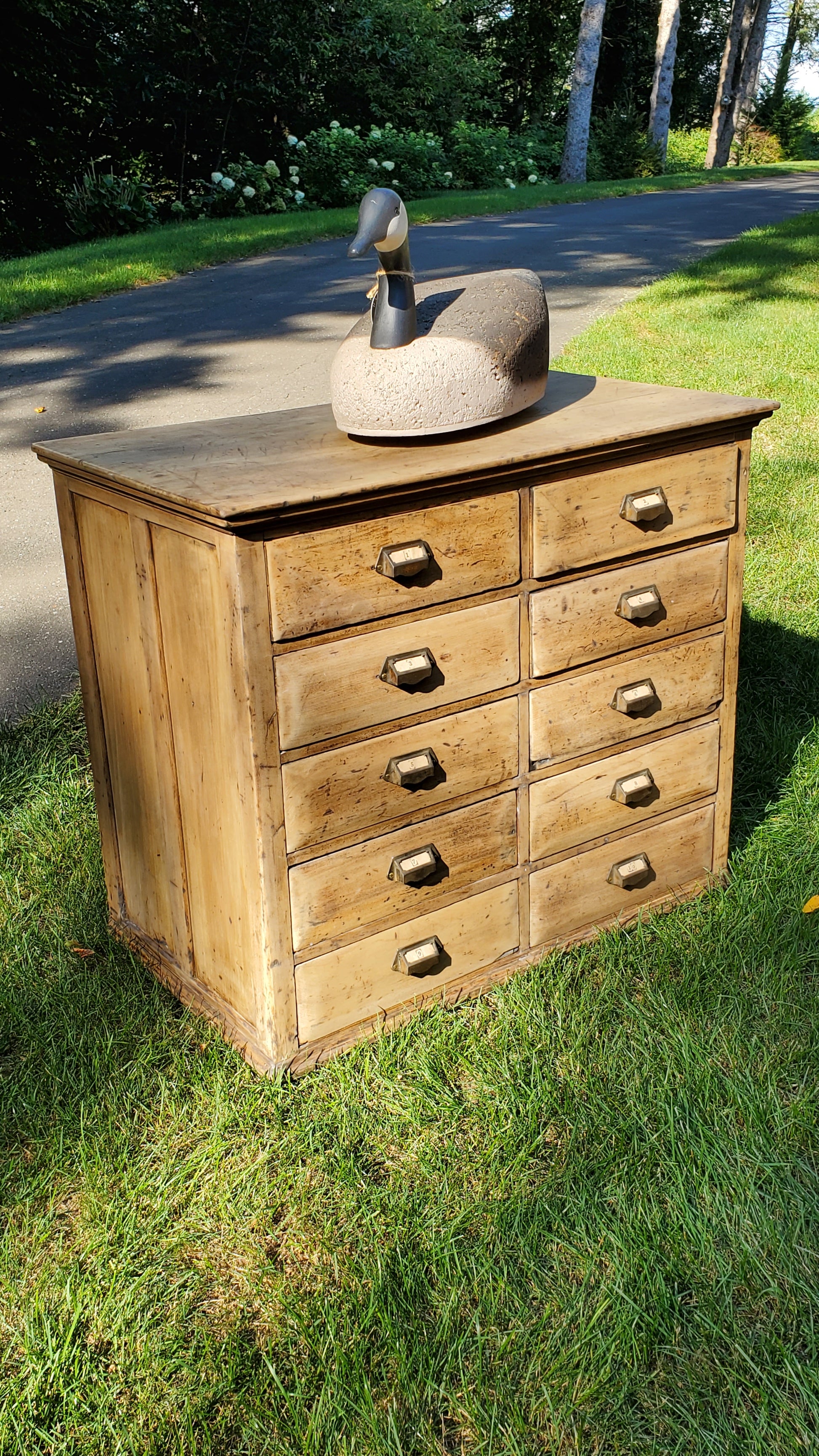 Beautifully restored Apothecary Chest. A dark finish was removed to reveal this light pine color with character showing its age with every imperfection in the wood.